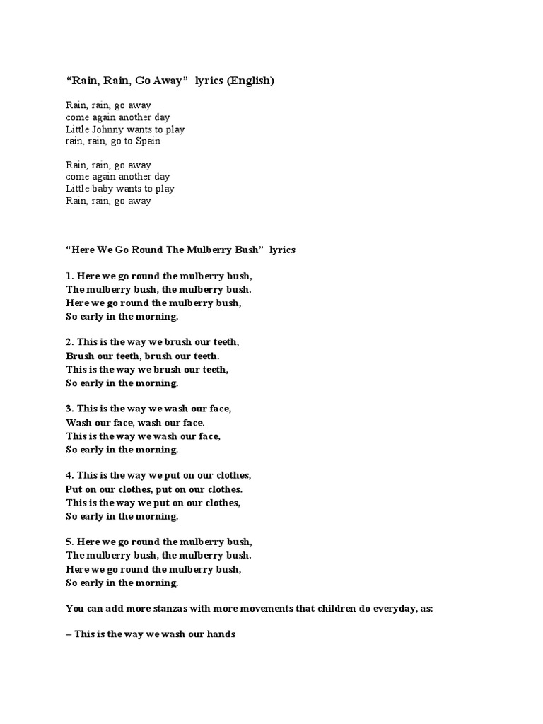 Rain Rain Go Away Song Lyrics Poster Printable By Helpful Hearts